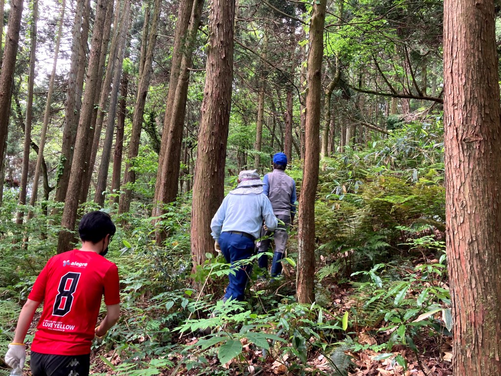 山へ到着し道なき道を突き進む