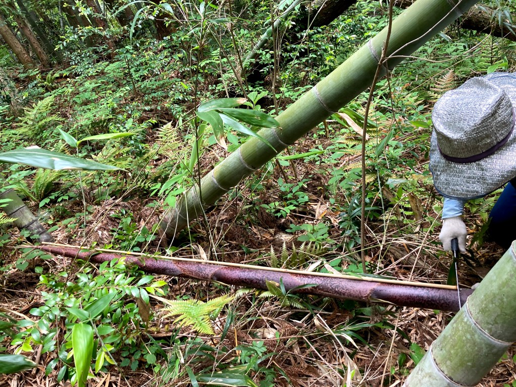 切る竹は緑ではなく茶色の皮をまとった竹だった