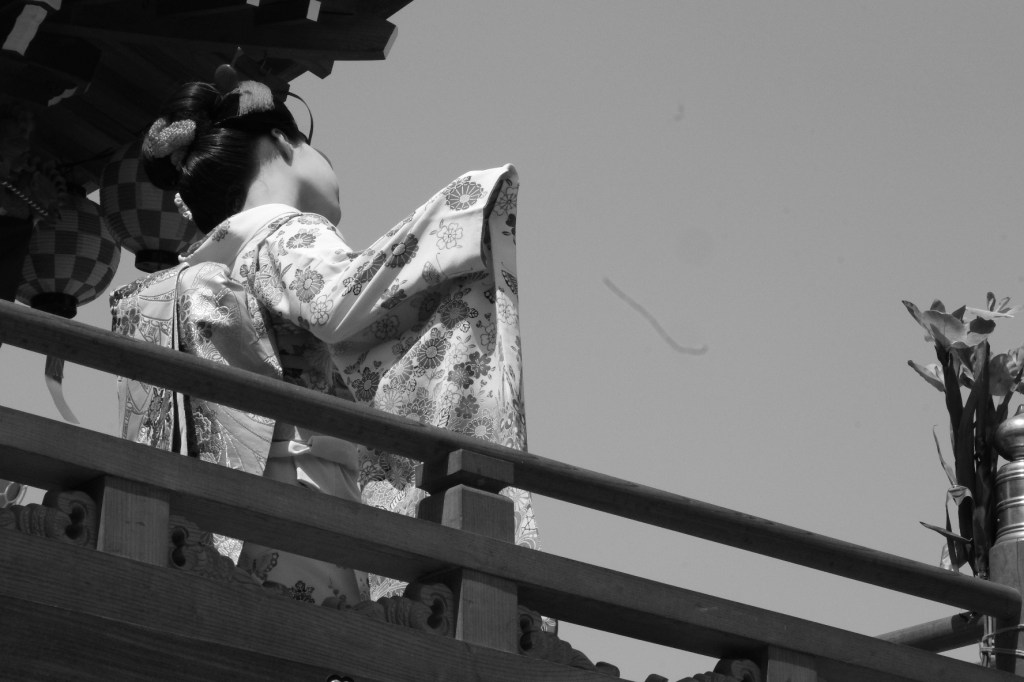 その屋台の上で女の子が踊る